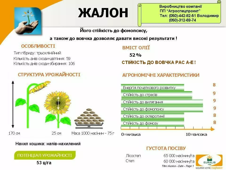ЖАЛОН F1 - трехлинейный гибрид. Высокая стойкость к фомопсису и заразихе!